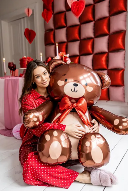 SITTING TEDDY BEAR WITH BOW BROWN | PARTY DECO 33″ SHAPE FOIL